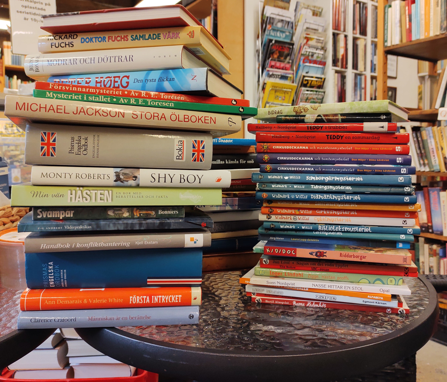 Vi har bl a fått in en del deckare, fina barnböcker, och historia. Som vanligt har vi också vinyl, en avdelning som har vuxit till sig och nu har över 1000 skivor i olika genrer.