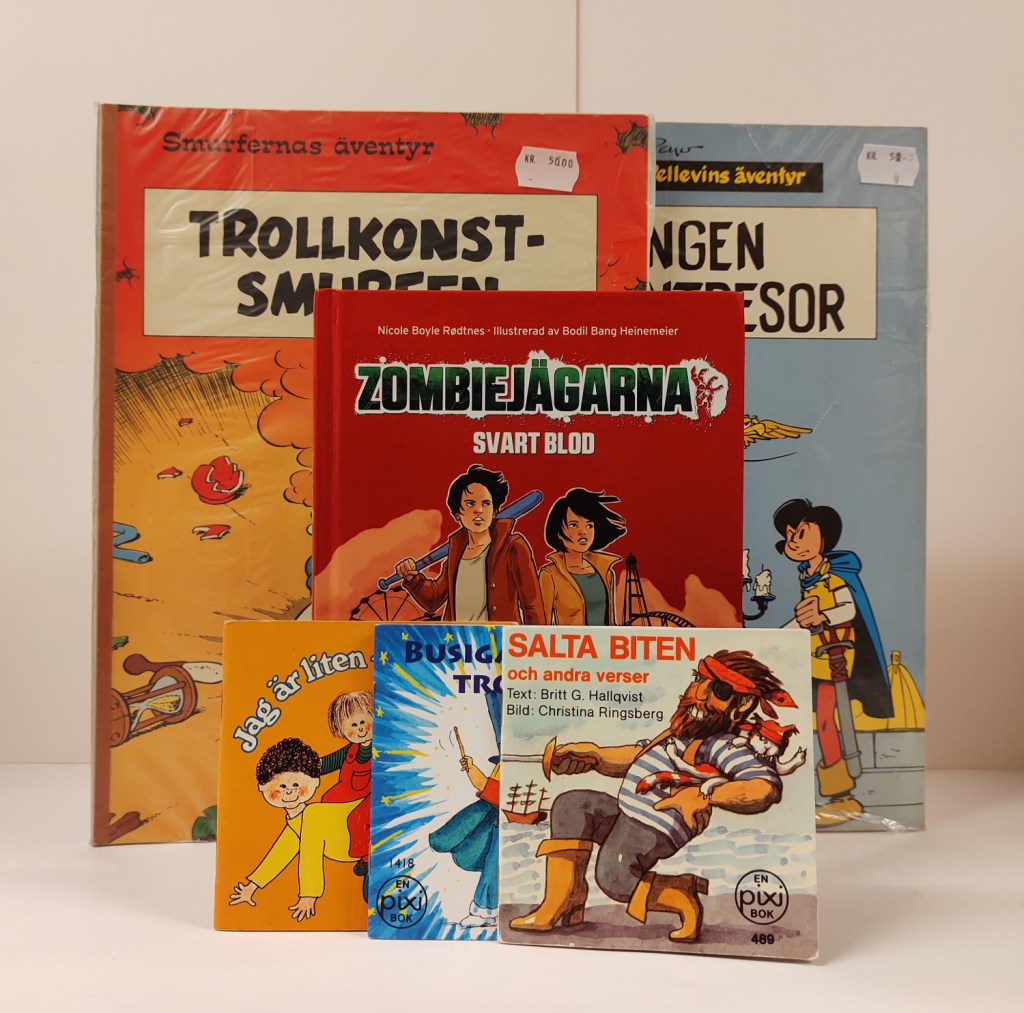 Välkommen in att skaffa trevlig läsning till ett närstående barn (eller bejaka ditt inre barn om du är vuxen). Med anledning av Läslovet har vi 25 % rabatt på alla barn- och ungdomsböcker och serier, kalle-pocket mm (med undantag för förlagsnytt) vecka 44.